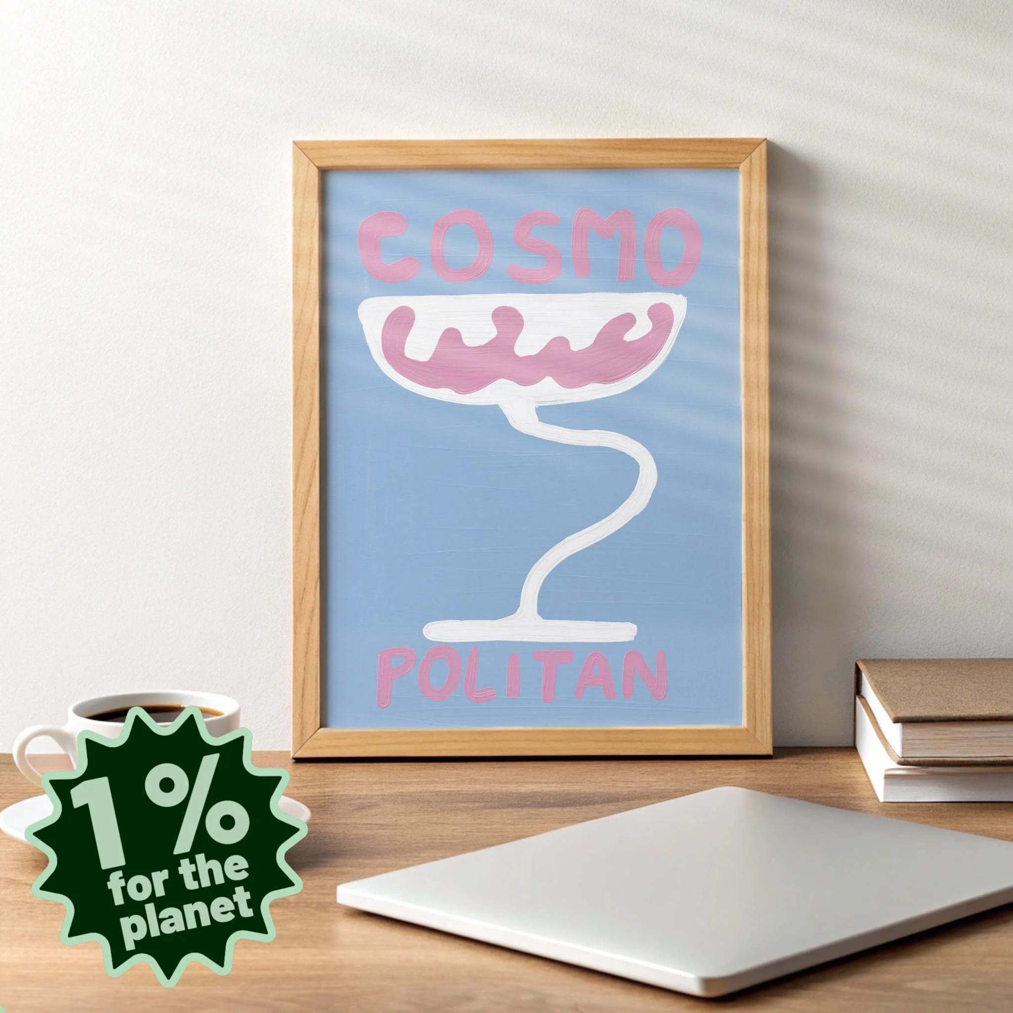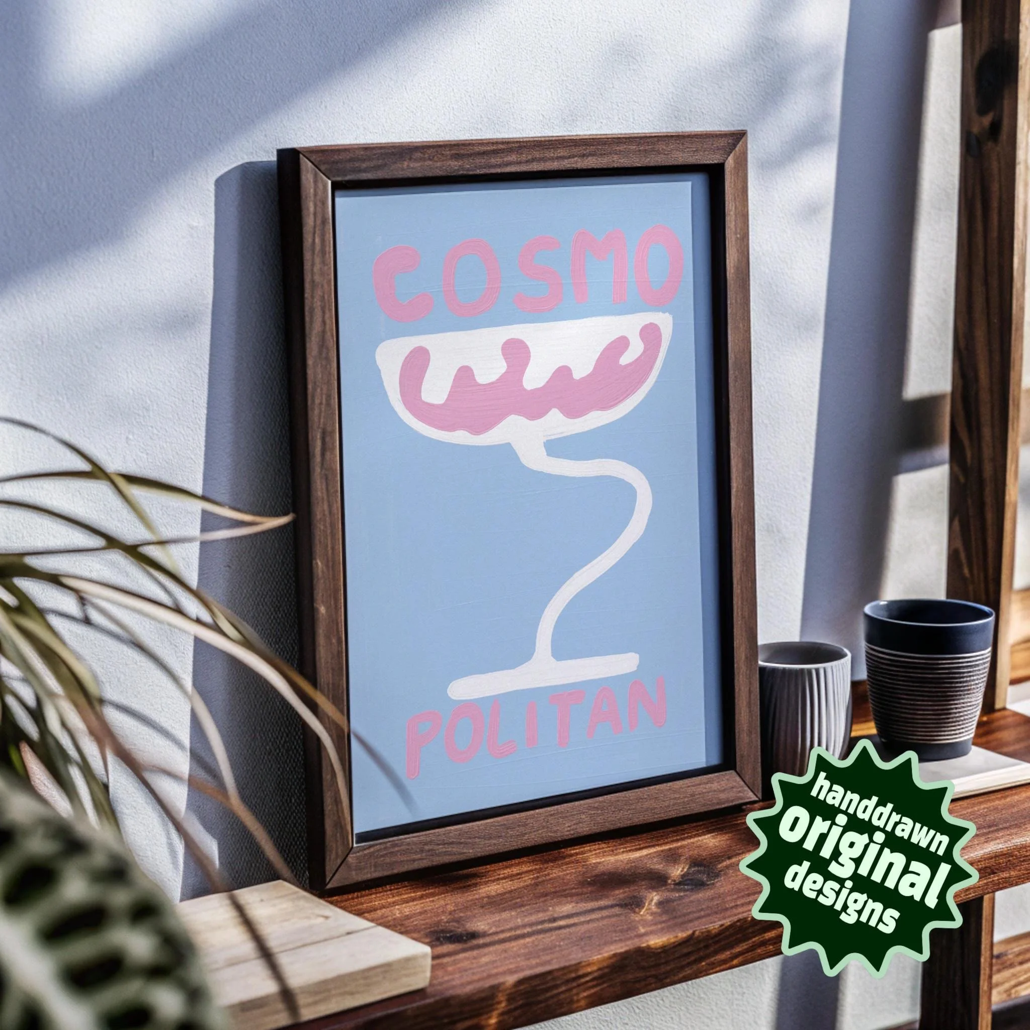 Cosmopolitan cocktail wall art print from a hand-drawn original artwork
