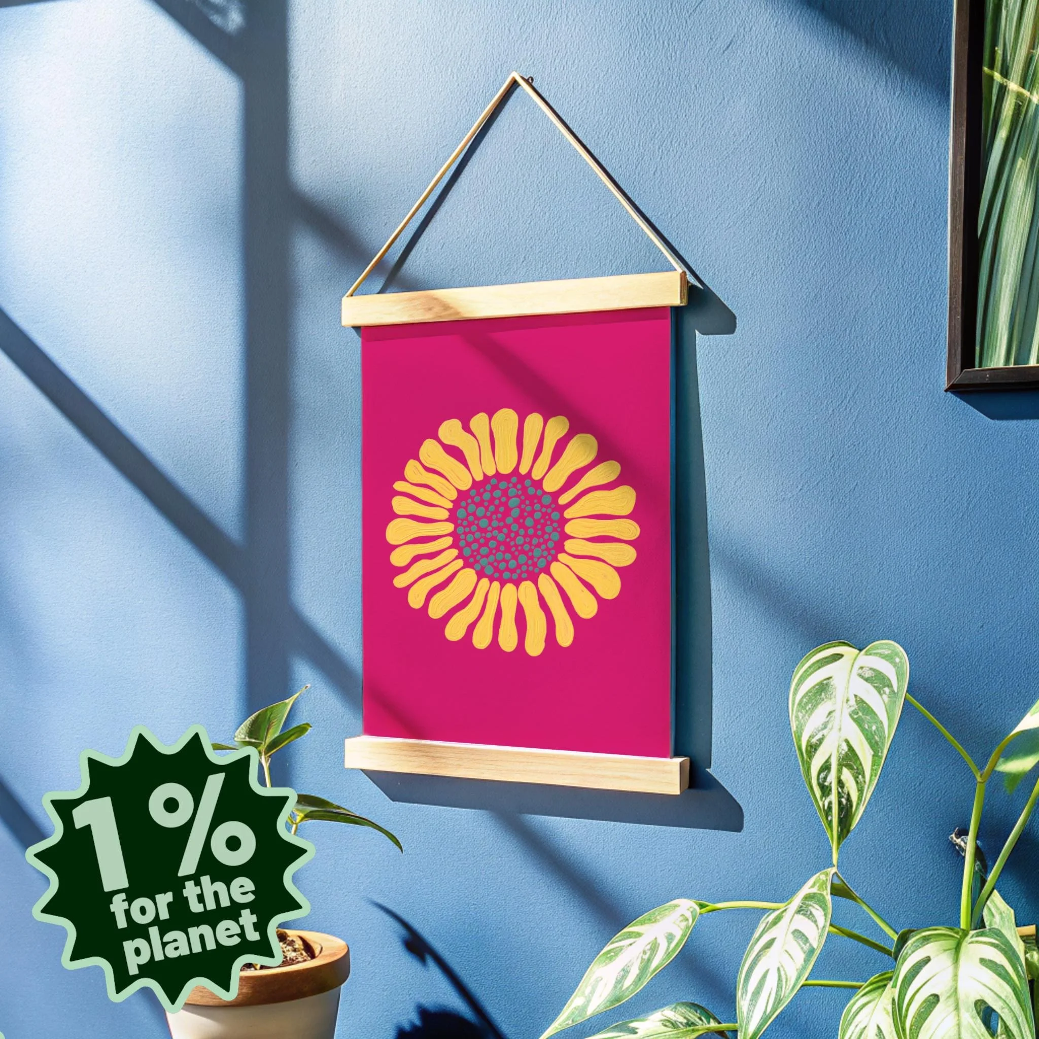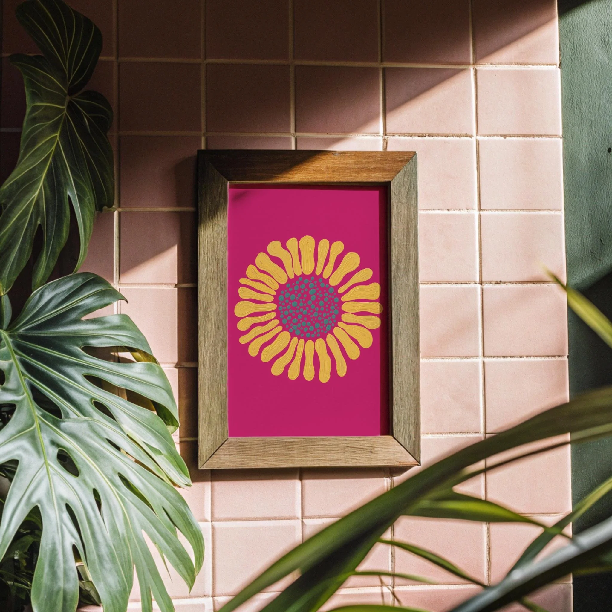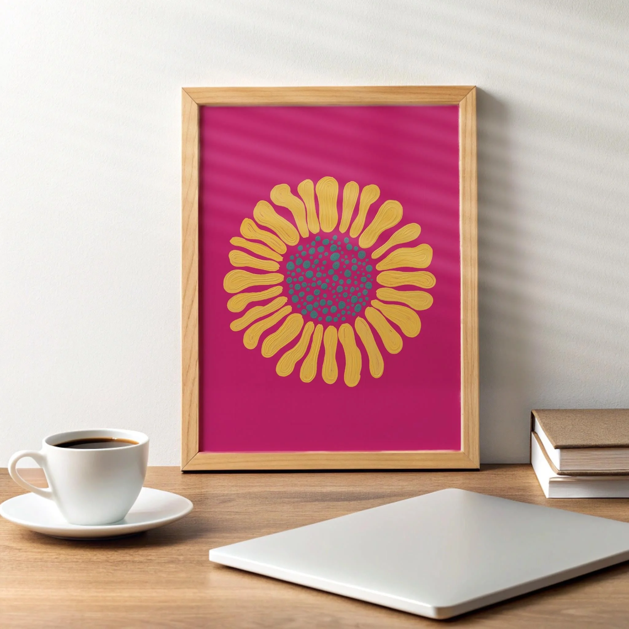 Minimalistic plant wall art of an abstract sunflower – hand-drawn and customizable