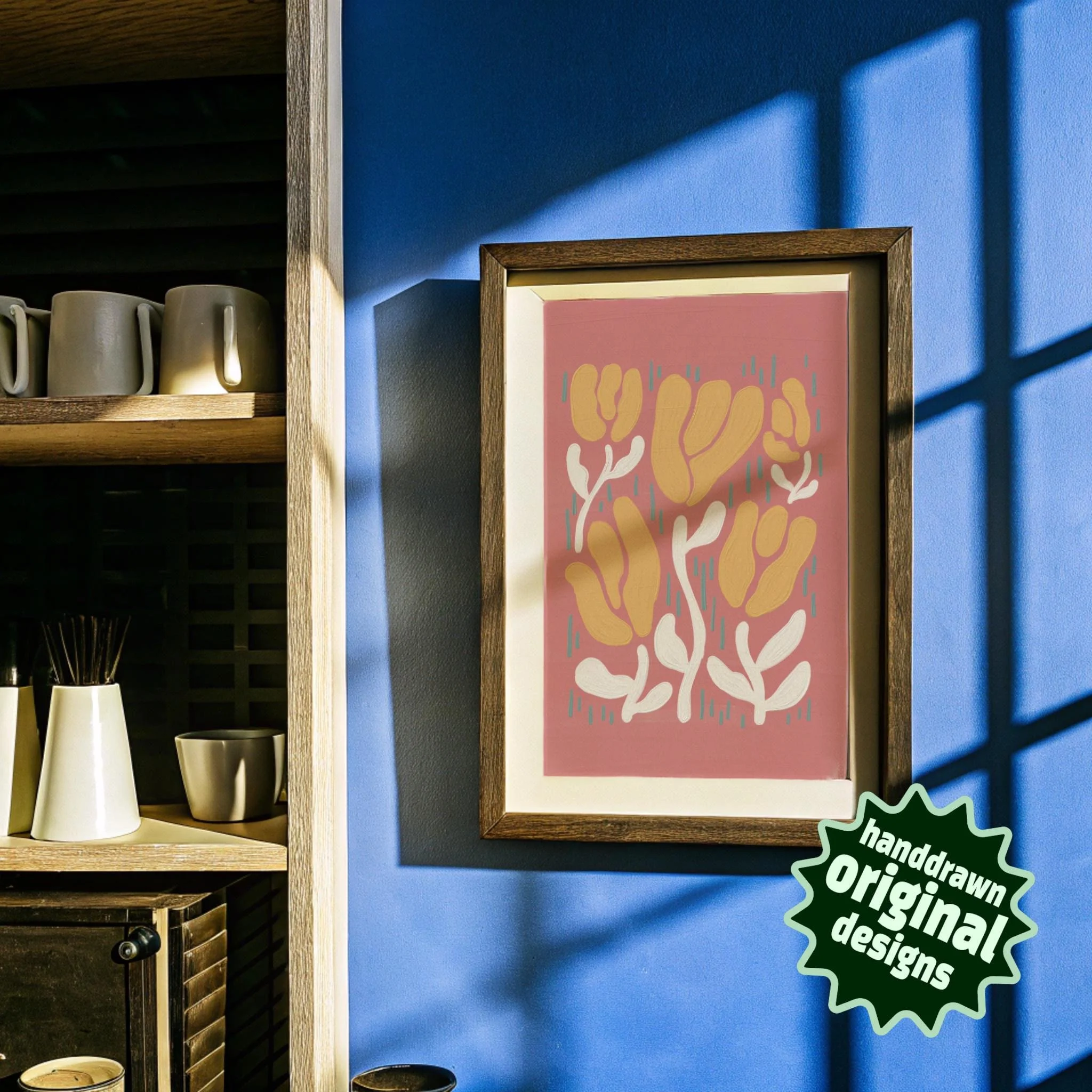 Minimalistic plant wall art of an abstract tulip flower – hand-drawn and customizable